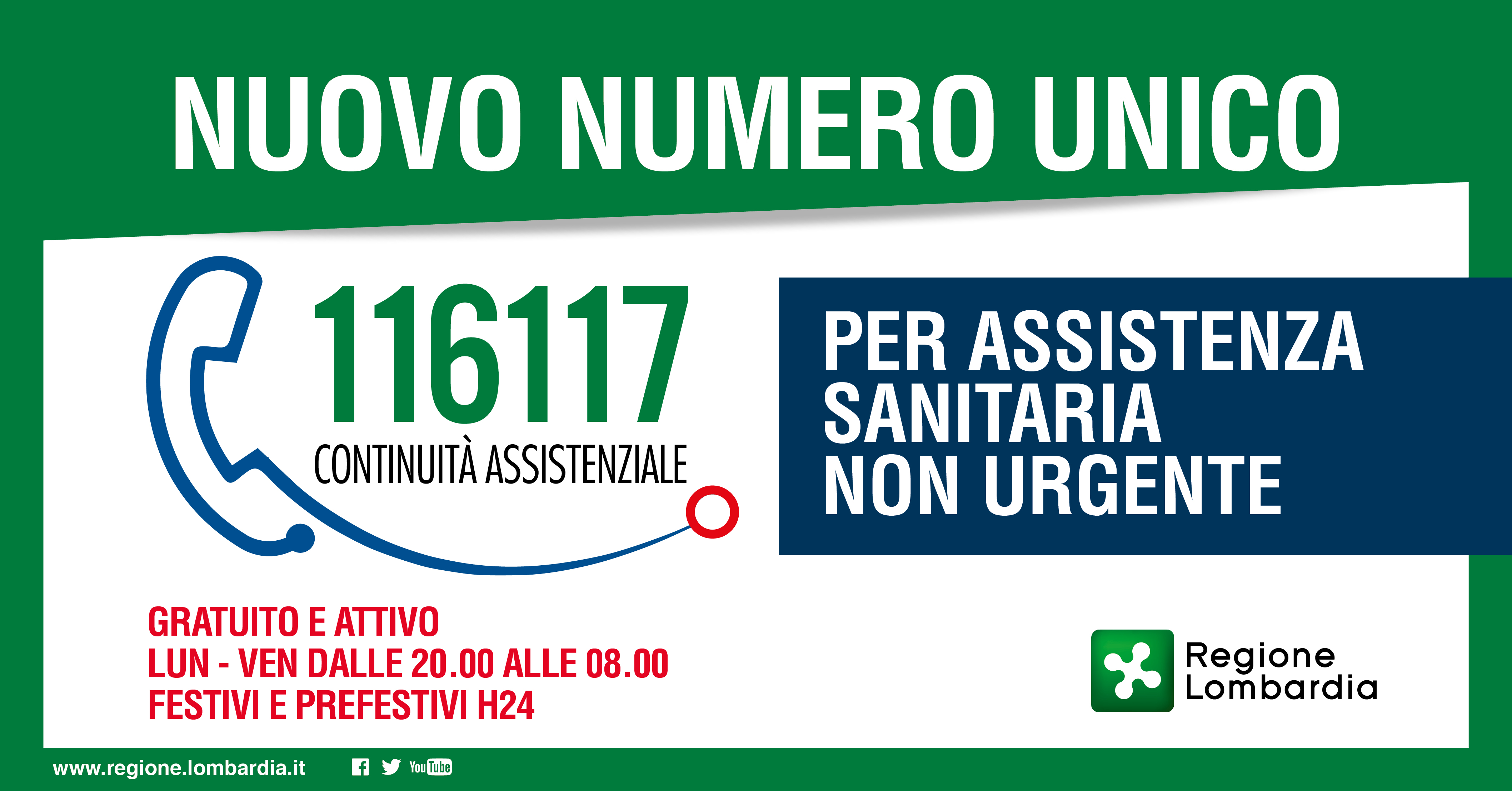 Numero unico nazionale 116 117 per l'accesso alle cure mediche non urgenti e ai servizi sanitari a bassa intensità.